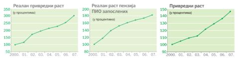 Привредни раст доста добро напредује. Уместо стагнације или чак назадовања, како би се очекивало по околном лелеку, друштвени производ Србије повећан је од 2000. године наовамо за готово једну половину. Није лоше – 5,6 одсто годишње – што је на нивоу земаља које брзо напредују.