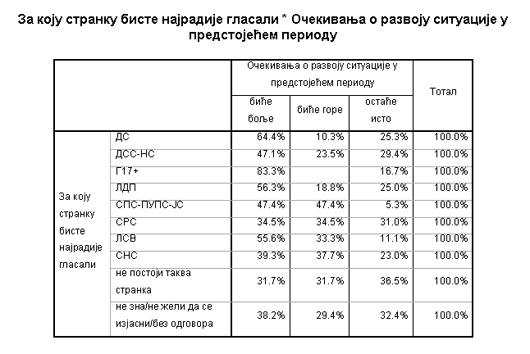 Очекивања о развоју ситуације према страначком опредељењу