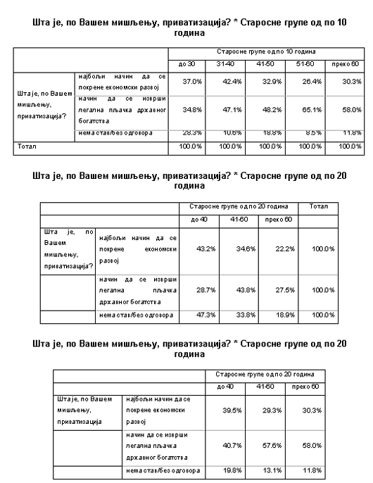 Ставови о приватизацији према старосним групама ![]()