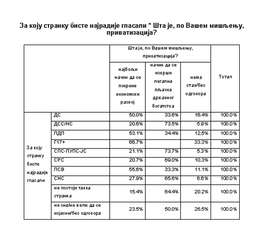 Ставови о приватизацији према страначком опредељењу ![]()