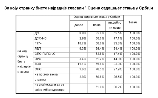 Оцене стања према страначком опредељењу