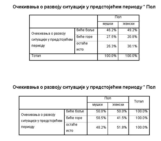 Очекивања о развоју ситуације према полу